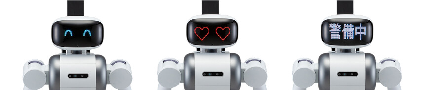 多言語対応の音声合成機能、テキスト表示や様々な表情が可能な顔ディスプレイで、人との自然なコミュニケーションを実現。ugoを介し、人対人の遠隔通話も可能。