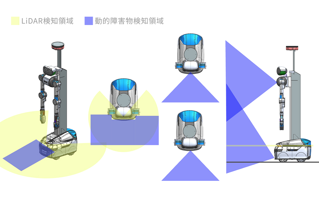 人がいる環境で安心して利用できるよう、最新のセンサー技術と高度な制御システムを搭載し、